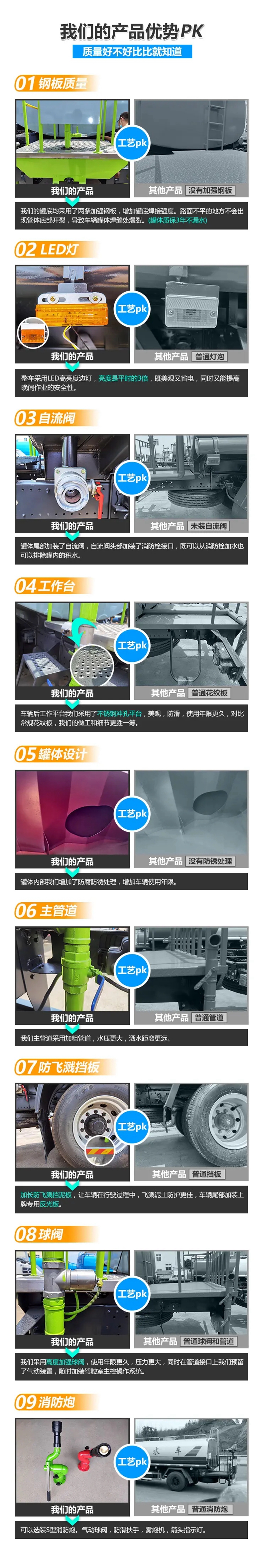 其他 | 1,該車僅選用3950軸距,罐體有效容積為11.66立方米。2,當(dāng)選裝帶噴霧機(jī)組平臺(tái)時(shí),罐體外形尺寸(長×長軸×短軸)/整車高為(mm):4200×2400×1700/3400;當(dāng)選裝普通后平臺(tái)時(shí),罐體外形尺寸(長×長軸×短軸)/整車高為(mm):4500×2400×1600/3200。3,防護(hù)材料:Q235B碳鋼,連接方式:左右側(cè)面防護(hù)與副梁均采用焊接連接,后下部防護(hù)與車架采用焊接連接,后部防護(hù)斷面尺寸(mm):150×50,后部防護(hù)離地高度(mm):480。4,ABS系統(tǒng)生產(chǎn)廠家,型號(hào) :焦作博瑞克**技術(shù)有限公司,J ABS。5,專用裝置:罐體,主要用于路面灑水及園林綠化。 | ||