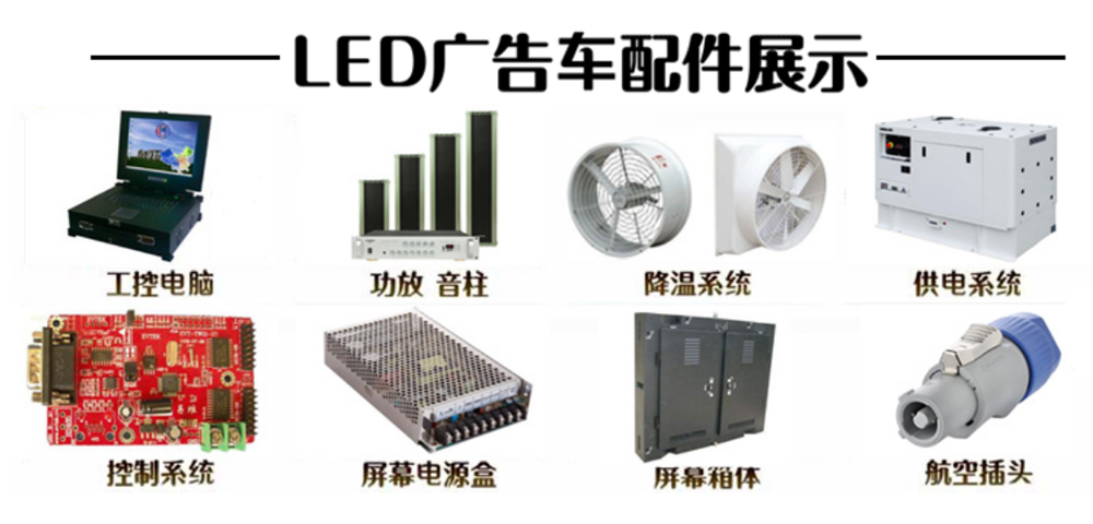 廣告車選裝配置:客戶可根據(jù)需求選裝屏幕清晰度(P10彩屏、P8彩屏、P6彩屏、P5彩屏、P4彩屏)、單面彩屏、雙面彩屏、雙面